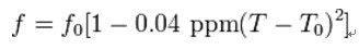 石英晶體的頻率特性取決於形狀或切割方式。音叉型晶體通常會(huì)切割成溫度特性是以25℃為中心的拋物線。這意味著,音叉晶體振盪器在室溫下產(chǎn)生的共振頻率接近其目標(biāo)頻率,當(dāng)溫度或增加或減少時(shí)頻率都會(huì)降低。頻率-溫度曲線為拋物線的常見(jiàn)32.768千赫音叉晶體的溫度係數(shù)是 負(fù)百萬(wàn)分之0.04/℃²。
