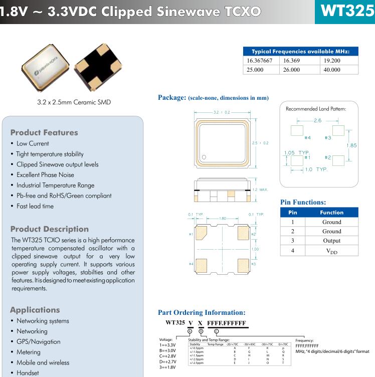 更多>>具備高性能和剪切正弦波輸出的環(huán)保TCXO振蕩器WT325CF0026.000000,專用于導(dǎo)航應(yīng)用,ECERA品牌
