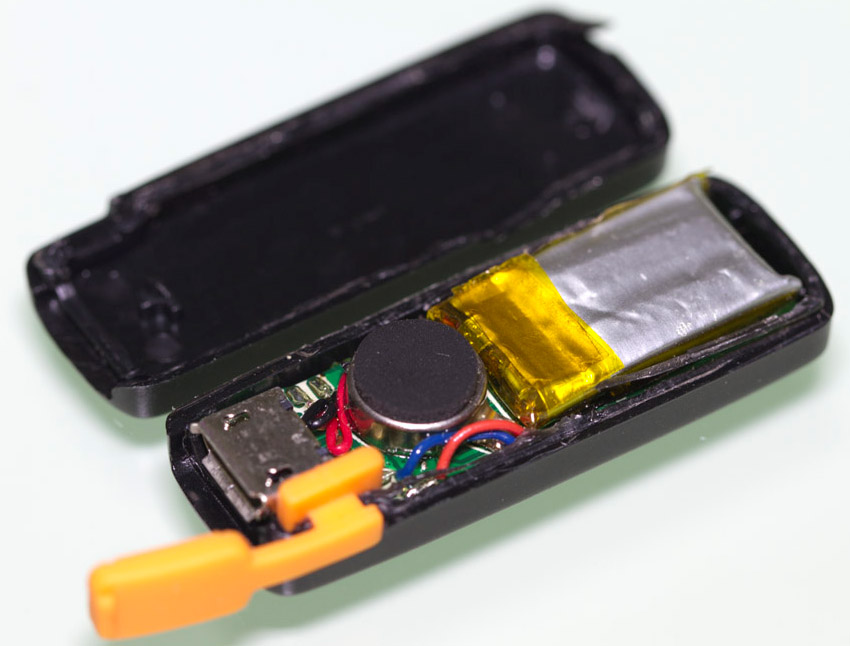現(xiàn)在就來拆拆手環(huán)主機了,由于手環(huán)外殼采用熱熔接方式,要拆開手環(huán)只能采用暴力方式拆解.揭開外殼,可以看到智能手環(huán)主機電路板和零件,從MicroUSB膠塞固定位置上可以看到膠塞頭并沒有完全密封起來,如果游泳時帶著這個手環(huán)進入水中可能會導致進水..jpg)