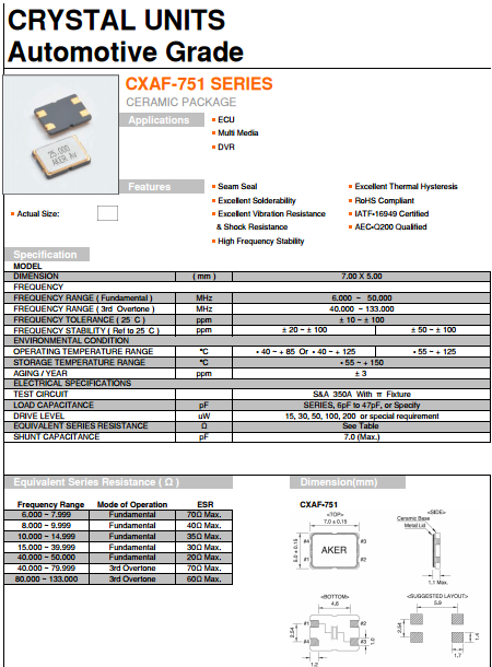 AKER晶振,CXA-016000-7B6A60晶振,CXAF-751石英晶振.晶體內(nèi)部石英晶片均采用了全自動(dòng)壓電石英晶片清洗技術(shù),采用高壓噴淋清洗,兆聲振動(dòng)的原理,一個(gè)全自動(dòng),清洗過程由PLC控制,由傳輸裝置,噴淋清洗段,噴淋漂洗段,風(fēng)力吹水段等, 操作自動(dòng)化程度高,除上下工件需要人工外,其余全部由設(shè)備自動(dòng)完成.根據(jù)需要,對(duì)速度,溫度,時(shí)間等參數(shù)進(jìn)行調(diào)整,使之最大限度的滿足工藝需要.能最大限度除去晶片污染物,并防止人工污染.