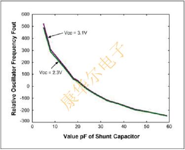 表2.Vcc=2.3V時可變負載電容的振蕩器頻率