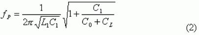 在振蕩器或VCXO設(shè)計中,需要晶體模型.通常采用的晶體諧振器模型[1-2]如圖3所示. 接下來,我們將使用表1和表2中給出的測量數(shù)據(jù)來確定圖3中元件的值.根據(jù)[1],在大多數(shù)晶體振蕩器應(yīng)用中,振蕩頻率是圖3中諧振器的并聯(lián)頻率.定義CL=CL1||CL2和fp為振蕩頻率,我們可以將阻抗方程寫成